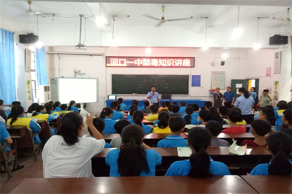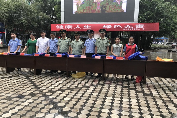 为进一步增强中小学生禁毒意识,传播禁毒知识,6月21日,县禁毒大队联合团县委、关工委等部门,在河口一中开展禁毒法治宣传教育活动。