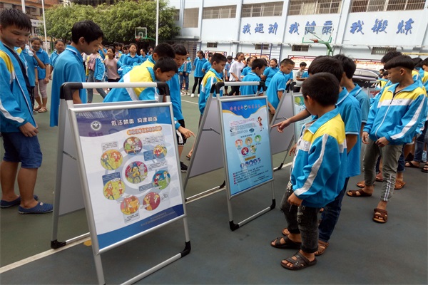 活动通过禁毒展板宣传、悬挂横幅、发放宣传资料、禁毒知识讲座等形式展开,营造了浓厚的禁毒氛围。建水县青少年事务社会工作中心的老师结合禁毒宣传短片和图片,向学生们介绍了毒品的种类及危害,讲解在校学生如何保护自身合法权益的相关知识,通过演示PPT、实物展示的形式向学生们介绍毒品的种类、如何识别合成毒品和防范毒品的方法,让学生们在轻松愉快的环境中学习防毒知识。