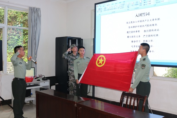 为加强仪式教育,增强团员对团员身份的认同感和对共青团工作的使命感,军、地团员青年们面向团旗庄严宣誓,活动在团员们响亮的宣誓声中拉开序幕。