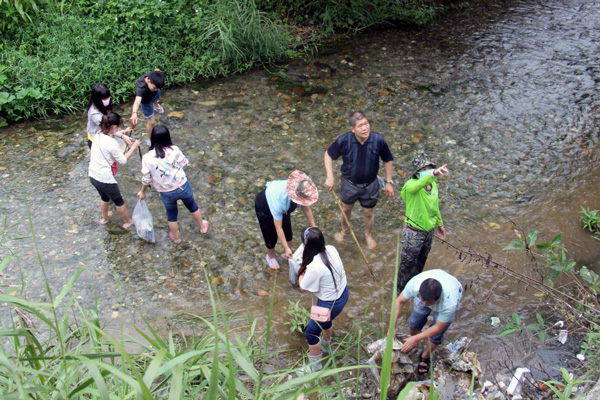 一大早,青年志愿者们便带上火钳、垃圾袋、桶等工具来到云水河开始清理河道垃圾。大家挽起裤脚便进入河中,走在冰冷的河水里,志愿者们丝毫没有畏缩,有的负责捡垃圾、有的负责提垃圾、有的负责运垃圾,大家分工明确,相互协作,相互配合。面对脏乱的各类垃圾,大家并没有叫苦叫累,也没有闲脏嫌臭,虽然天气阴冷,但却干的热火朝天。不知不觉中,天空飘起了小雨,而大家依然淋着雨在认真的清理着垃圾。清理结束后,志愿者们还耐心的告诫居住在河道两旁的群众不要往河内扔倒垃圾,要保护我们的母亲河,要爱护我们生活的家园。美丽的志愿者们呀,你们都是最可爱的人呐。