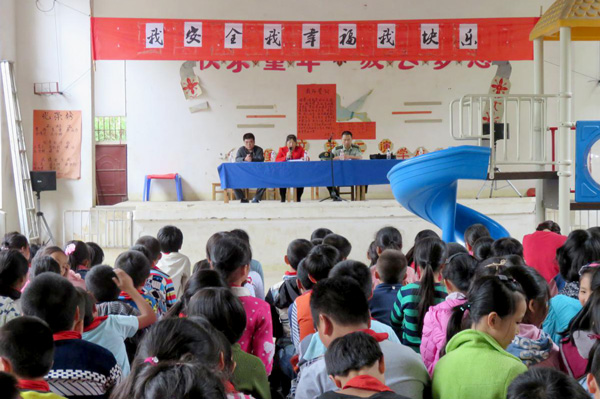 下午3:30活动正式开始,活动期间,首先由学校主管安全的夏副校长结合清明节期间的安全要求,加强道路交通、森林防火、食品卫生、防雷暴雨、防踩踏、防溺水等常规安全宣传教育。