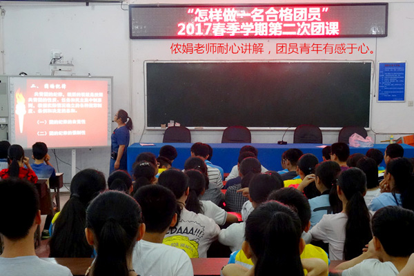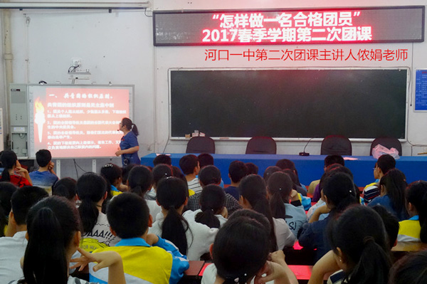 根据云青通[2017]14号文件精神指示,4月底前,各基层团委要组织每名团员开展以“怎样做一名合格团员”为主题的团课。4月13日下午,河口一中校团委按照开学初校团委制定的工作计划,由河口一中团委宣传委员讲授第二次团课。