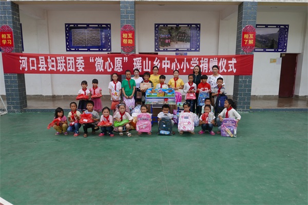 根据河口县妇女联合会、共青团河口县委联合举办的“凝聚爱•共圆梦”微心愿征集活动的要求,瑶山乡积极开展、认真落实,在瑶山中心小学、牛塘小学、上海华安希望小学、八角小学贫困学生中共征集了116个“微心愿”,并于7月6日下午,在瑶山乡中心校举行了捐赠仪式。
