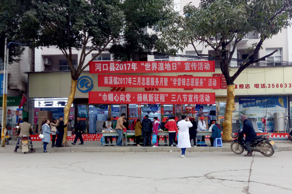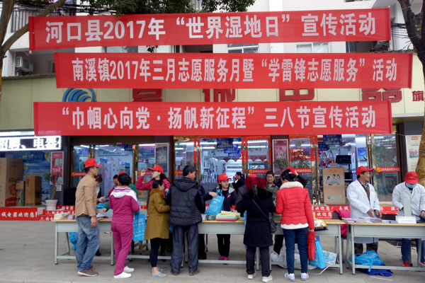镇卫生院设立健康咨询台,免费为路人测量血压,发放避孕药、避孕套,积极营造了“关爱女性”的浓厚氛围。青年志愿者们以此次活动为契机,同时宣传讲解城乡环境卫生整治、森林资源保护、野生动物、湿地保护等内容,受到了群众们的好评。